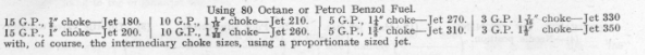 For rough guidance, therefore, the following jet sizes should be approximately correct for the choke sizes in question :